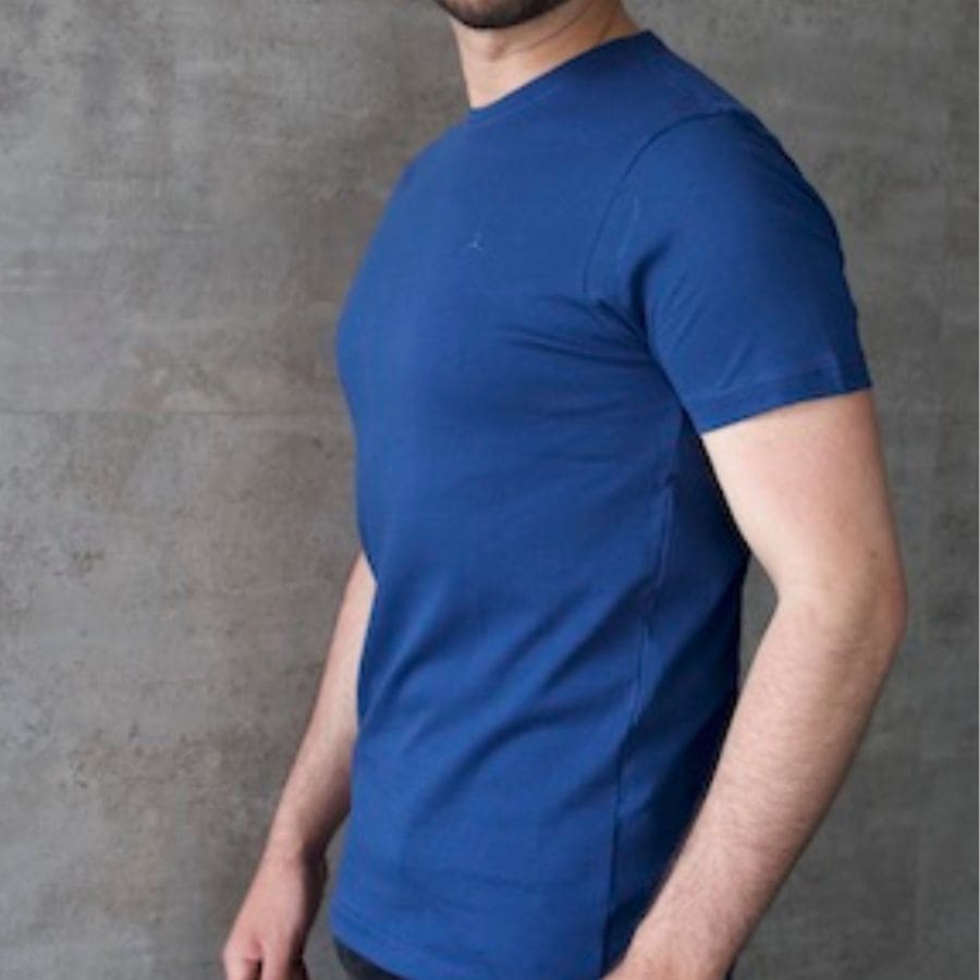 Camiseta cuello redondo Azul Oscura, 100% Algodon Pima, Casual, Tacto Suave, logo Aplique Azul Navy lado izquierdo tono a tono, Básica, producto importado,